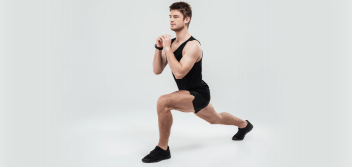 This exercise, too, targets your quads, glutes, and hamstrings. Stand straight with your feet apart as wide as your shoulders. Now, put your left foot back and bend both knees to form 90-degrees angles. Then, push back up and come back back to your original position. Repeat ten times with three reps on each side.