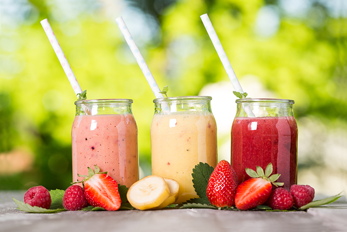 Liquids are easy to digest, quickly absorbed and, most of all, convenient. To get the most out of your smoothie, blend together some whey protein, yogurt, skim milk, a few fruits (like mangos and melons) .The result and taste will delight even the most tired muscles!!